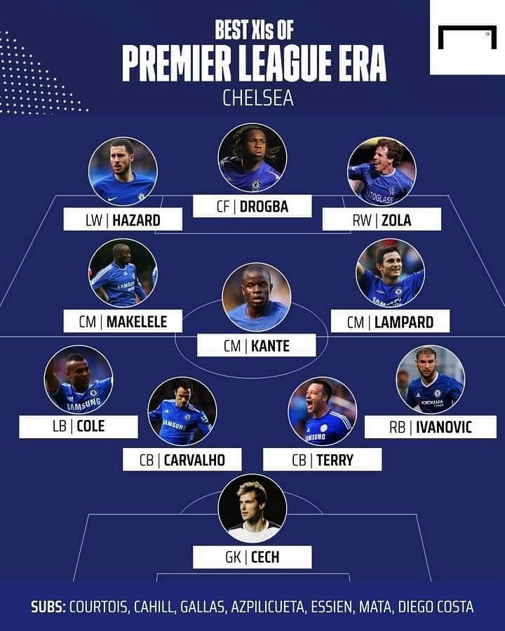 오늘은 골닷컴에서 선정한 첼시 역대 베스트 11을 알아보겠습니다. 여러 언론에서 첼시의 베스트 11을 뽑았지만 개인적으론 골닷컴 선정 선수들이 제가 생각한 베스트 11과 가장 유사하였습니다.
